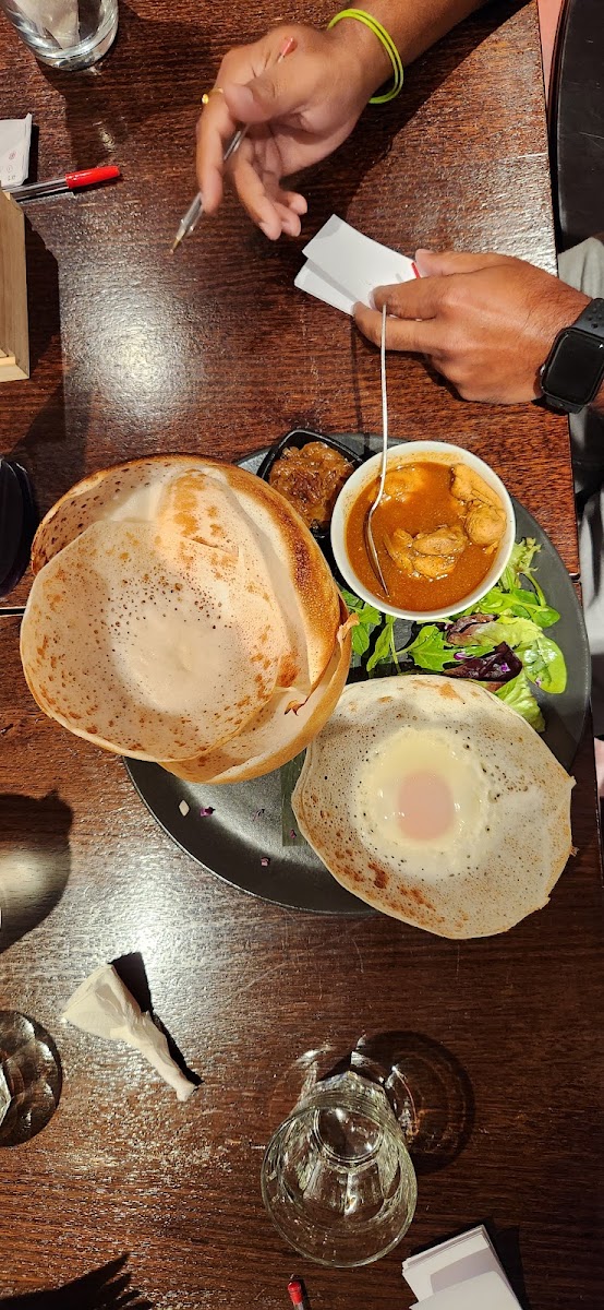What immediately stands out at Mr Hoppers is how focused the menu is on traditional Sri Lankan flavors. The restaurant revolves around its signature dish: hoppers. These bowl-shaped rice flour pancakes arrive crisp at the edges and soft in the center, making them perfect for soaking up rich curries. The Hoppers with Fish Curry is easily one of the most memorable plates here. The curry is fragrant, slightly spicy, and deeply comforting-each bite with the hopper creates a balance of texture and flavor that feels both hearty and authentic.